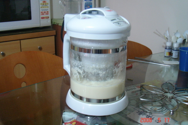 15分鐘後 豆漿機發出嗶嗶聲 Ya終於完成了